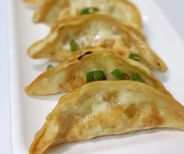 5 Delicadas empanadillas rellenas de camarones frescos y sazonados, doradas a la plancha para obtener una textura crujiente por fuera y jugosa por dentro. Un manjar marino irresistible.
